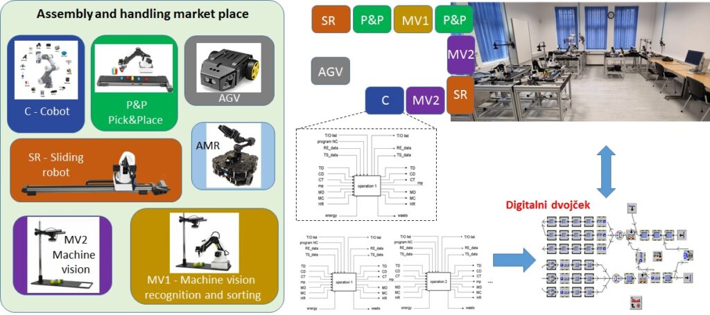 Koncept modularne proizvodnje – fotografija dejanskih modulov ter laboratorijskega okolja.