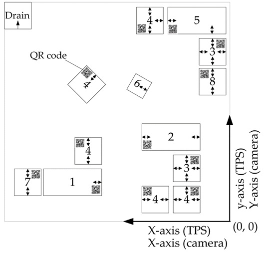 1 | Skladišče 1 | Za shranjevanje barvnih kock in za potrebe montaže. Glavne komponente: robotska drsna tirnica z robotsko roko Magician, skladiščna mesta in zabojniki ter mesto za nakladanje/razkladanje. Ima eno vstopno/izstopno točko, pripravljeno za povezavo z AMR (nakladanje in razkladanje palet ali delov). |